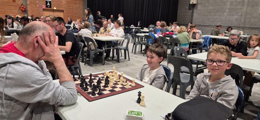 Dans le même temps, les plus jeunes ont commencé leur tournoi. Ils jouent à une cadence plus rapide et auront fini leurs sept parties en même temps que les grands. Bons débuts pour l’instant pour Célestin, Loup et Paul, avec déjà des prestations très intéressantes : à confirmer !