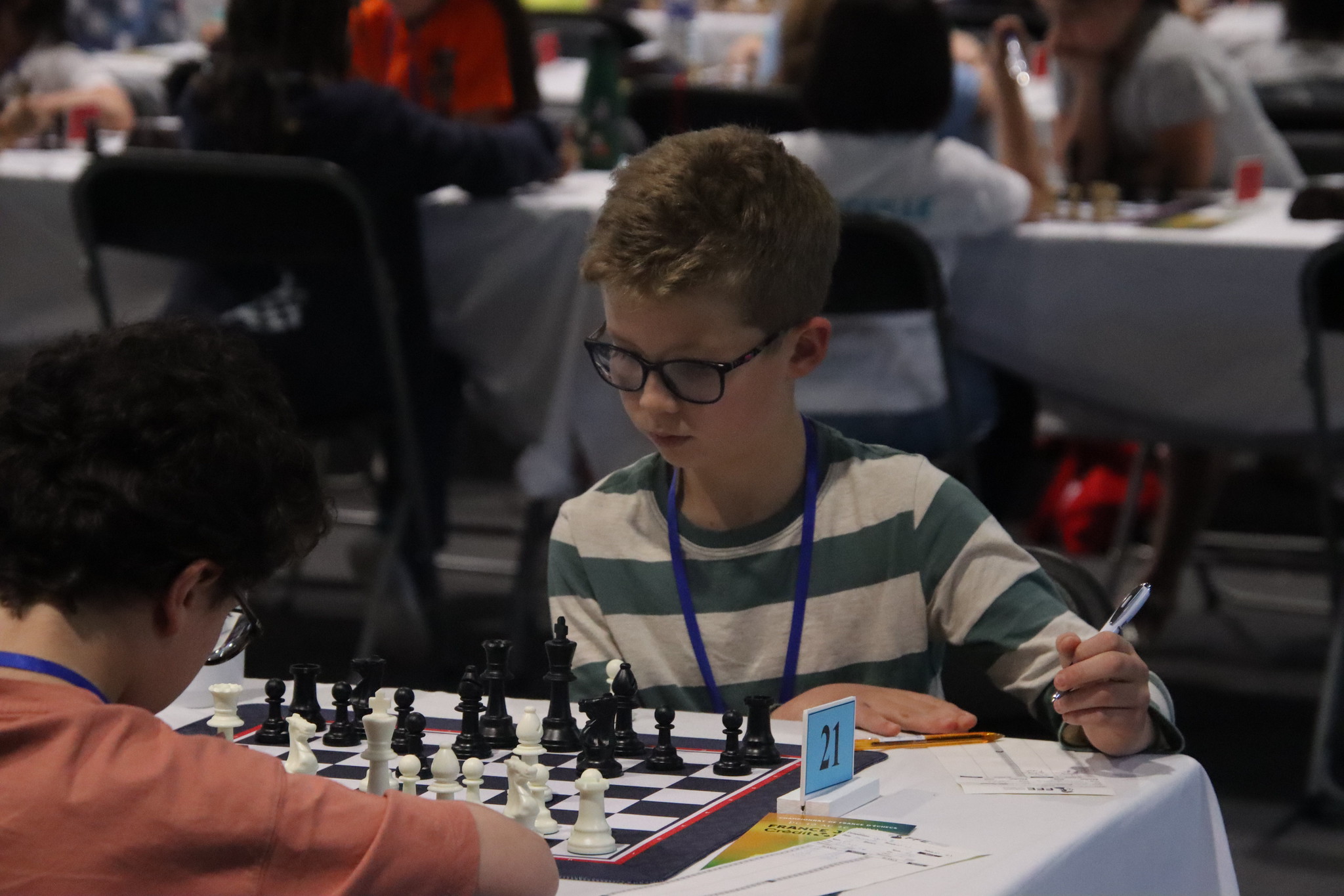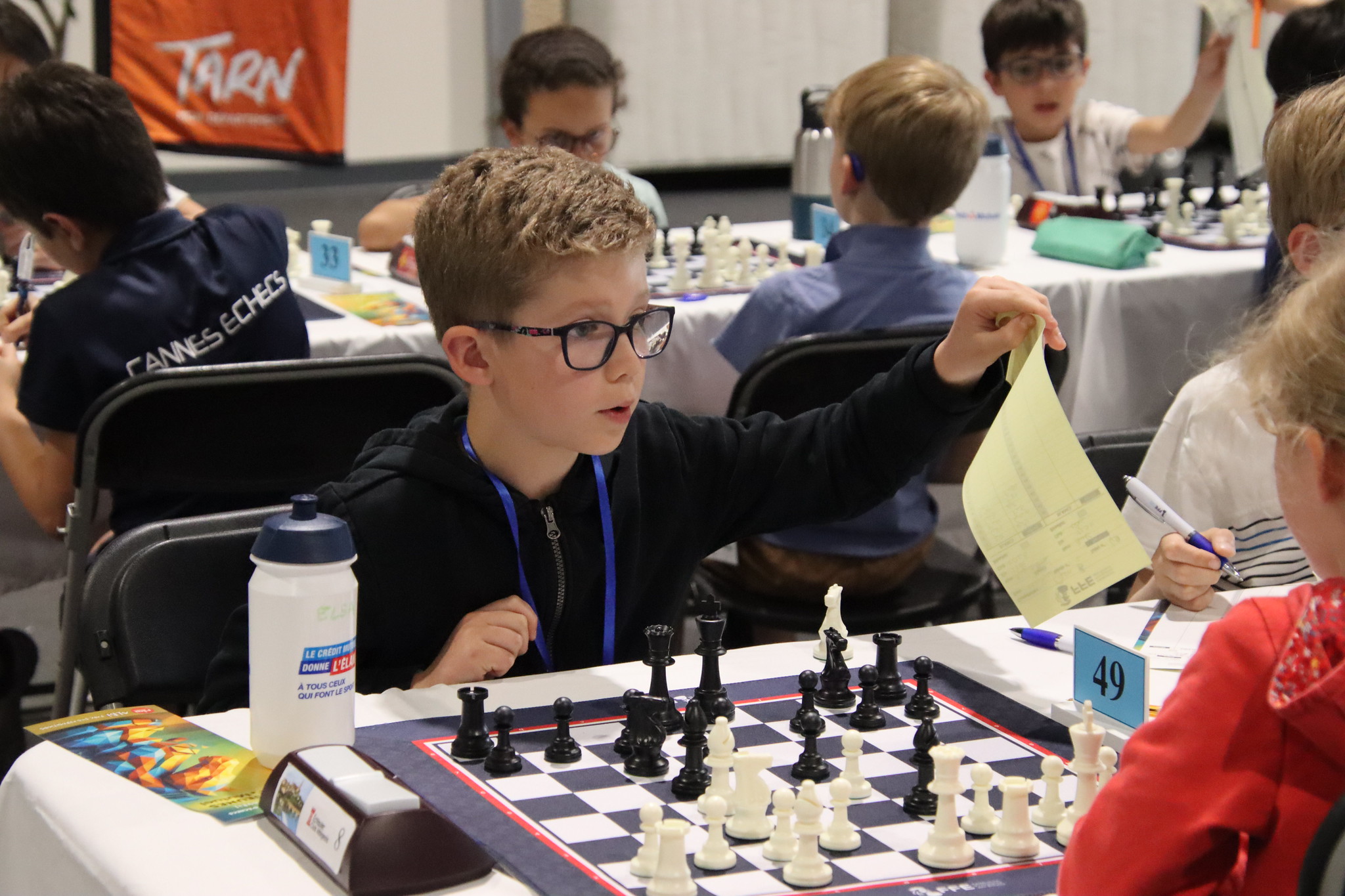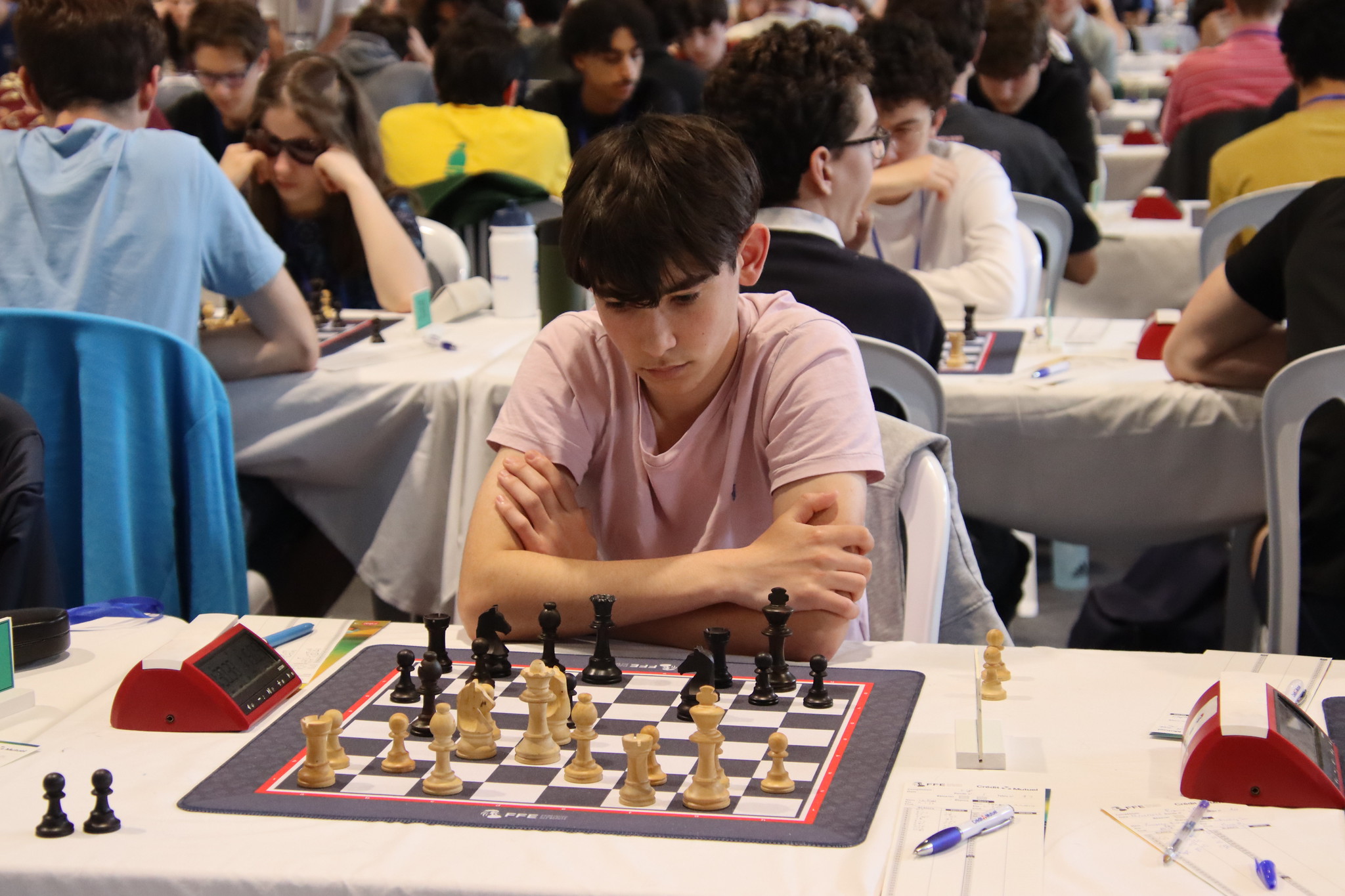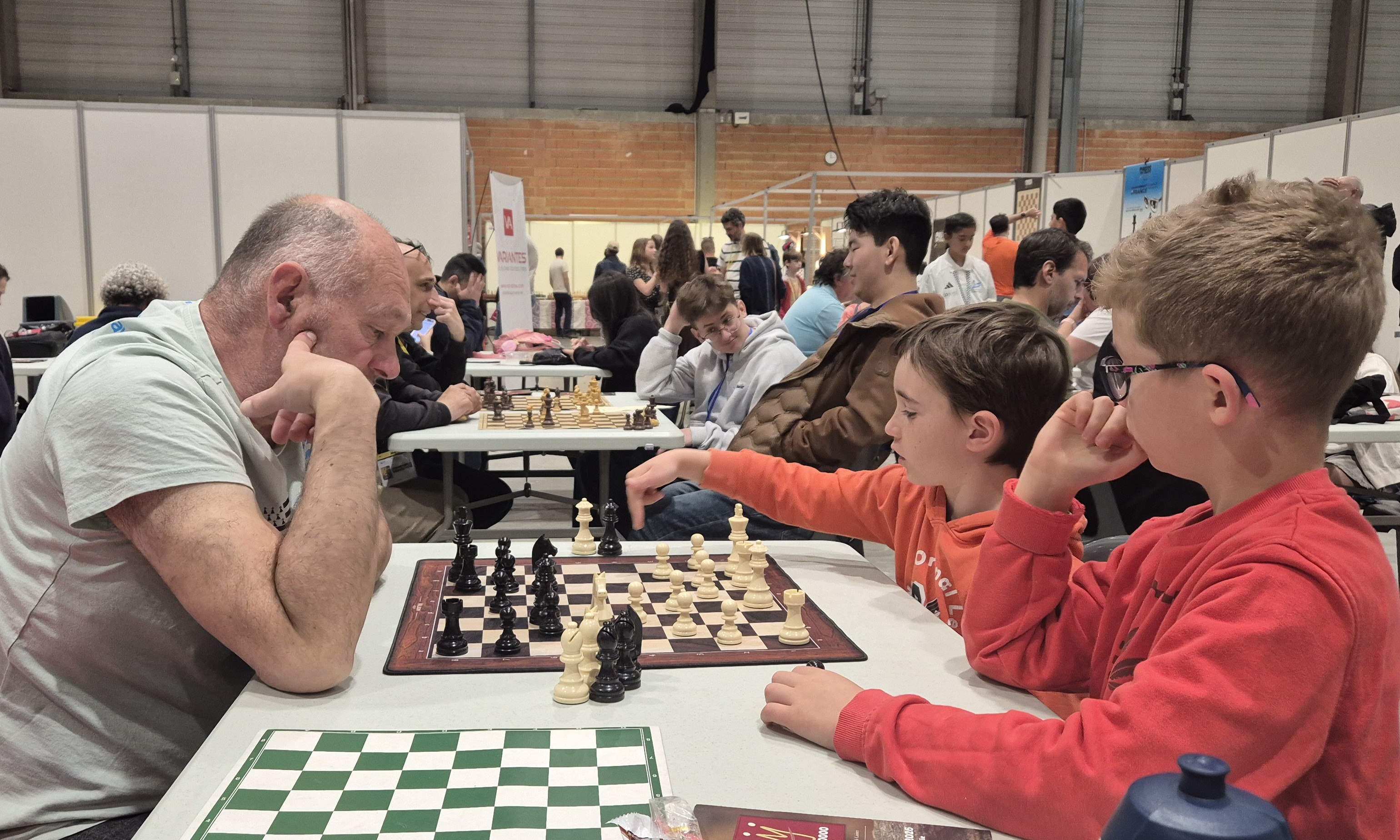 Mercredi, Paul et Célestin ont entamé l’Open B. Une défaite pour commencer, mais une victoire pour suivre ! Jeudi, Célestin perd ses deux parties mais Paul en gagne une pour conserver ses 50 %. Pas facile d’affronter des FIDE ! Mais les parties sont sérieuses et bien construites.