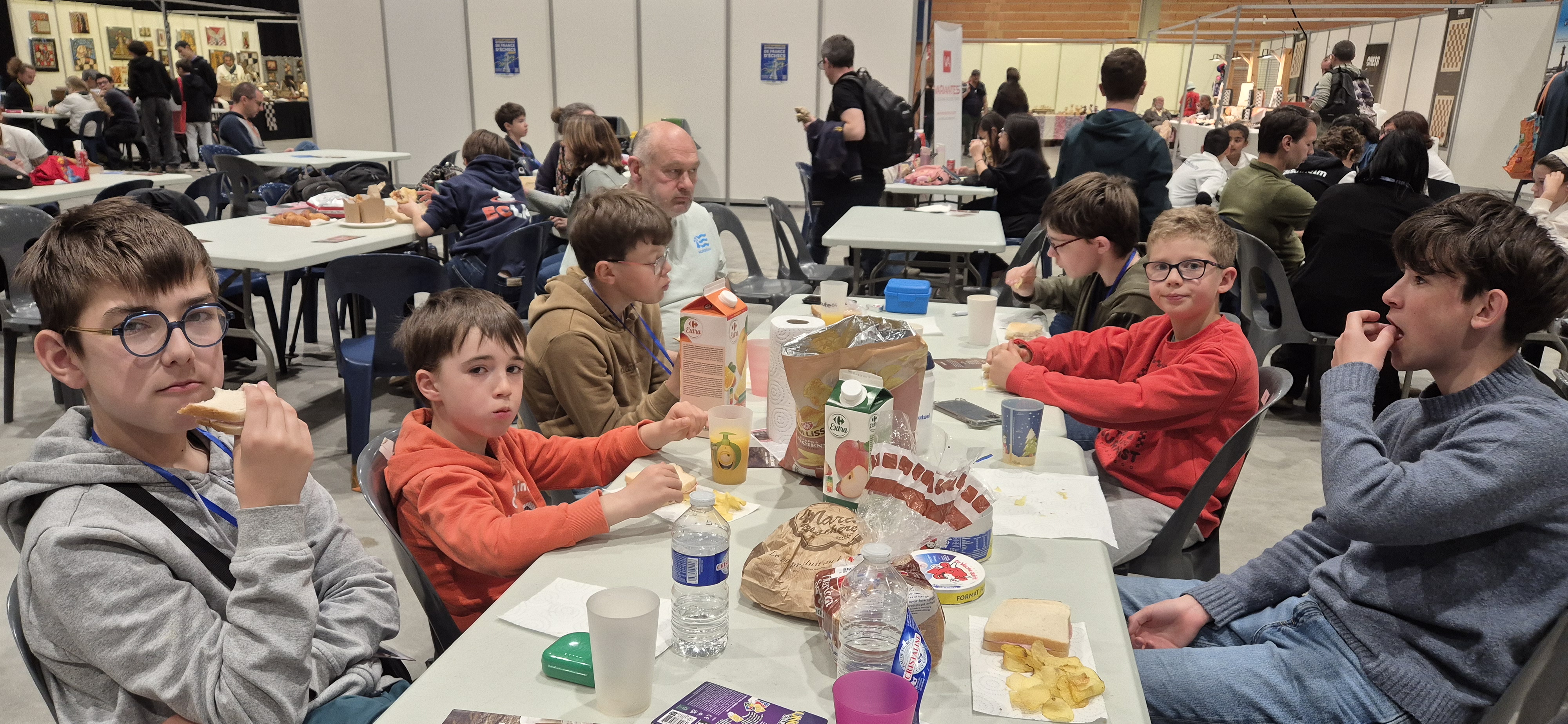 Le tournoi bat son plein dans une ambiance magnifique, et le séjour se déroule très bien. Le groupe est logé dans un gîte agréable à 20 kilomètres d’Albi. Les journées débutent tranquillement, avec un réveil échelonné et des moments de détente. Puis vers 10 heures, préparation et travail en équipe. Loïc entraîne tout le groupe mais Amaury “le grand ancien” vient lui donner un coup de main pour les plus grands. On analyse les parties de la veille, on regarde ce qui n’a pas marché … Les jeunes rentrent bien dans cette discipline et cela porte ses fruits, avec des parties très intéressantes, même dans les défaites. En début d’après-midi, départ pour Albi, il ne faut pas traîner car 1930 joueurs, ça en fait du monde, ça en fait des accompagnateurs, ça en fait des voitures ! Loïc et Marie-Odile s’installent dans la salle d’analyse et attendent les joueurs qui les rejoignent une fois la partie finie. Retour au gîte, et les enfants font honneur aux délicieux repas que Marie-Odile leur prépare : ça creuse, une partie d’échecs ! Soirée tranquille et extinction des feux pas trop tardive, il faut refaire ses forces !
