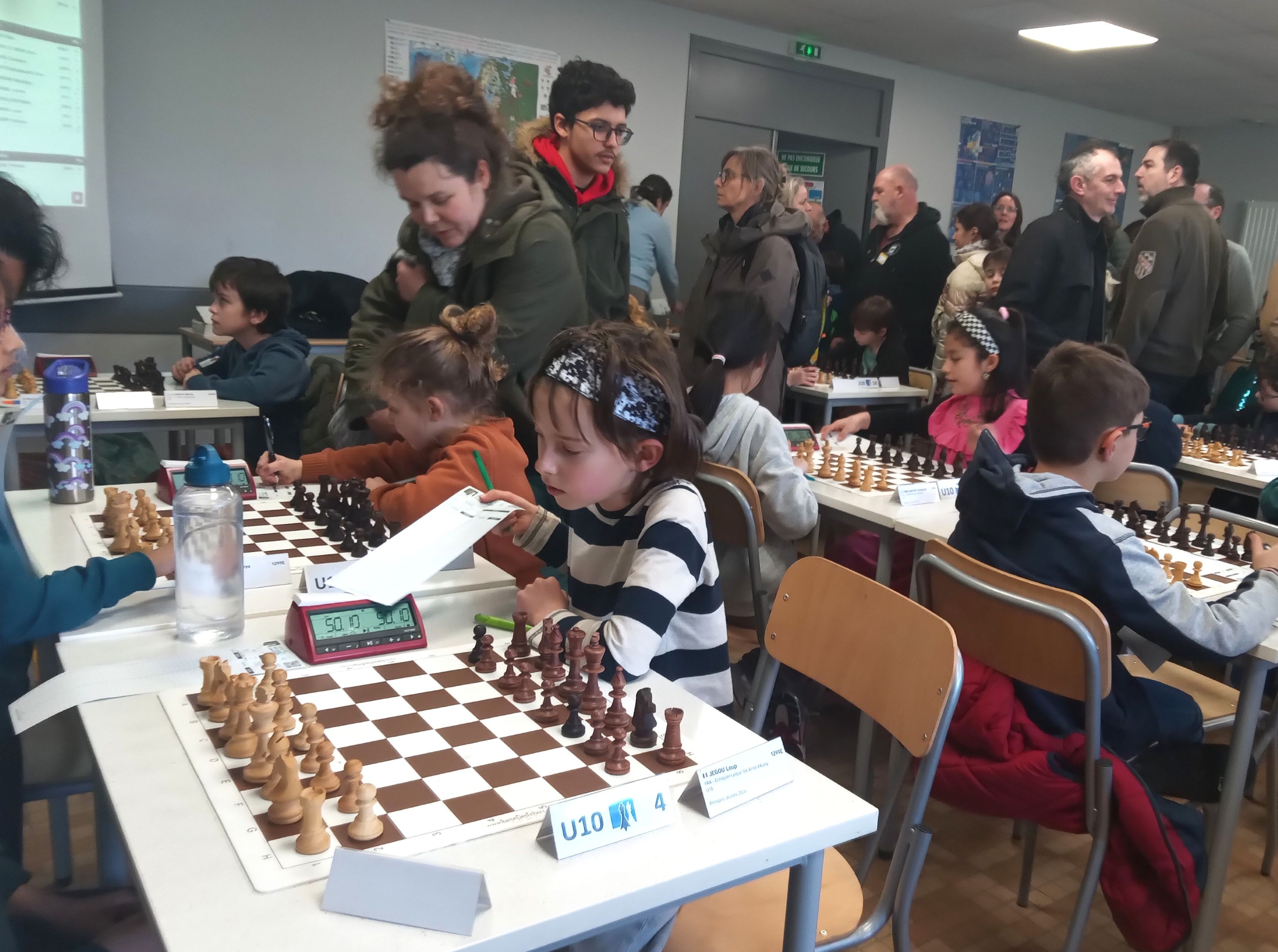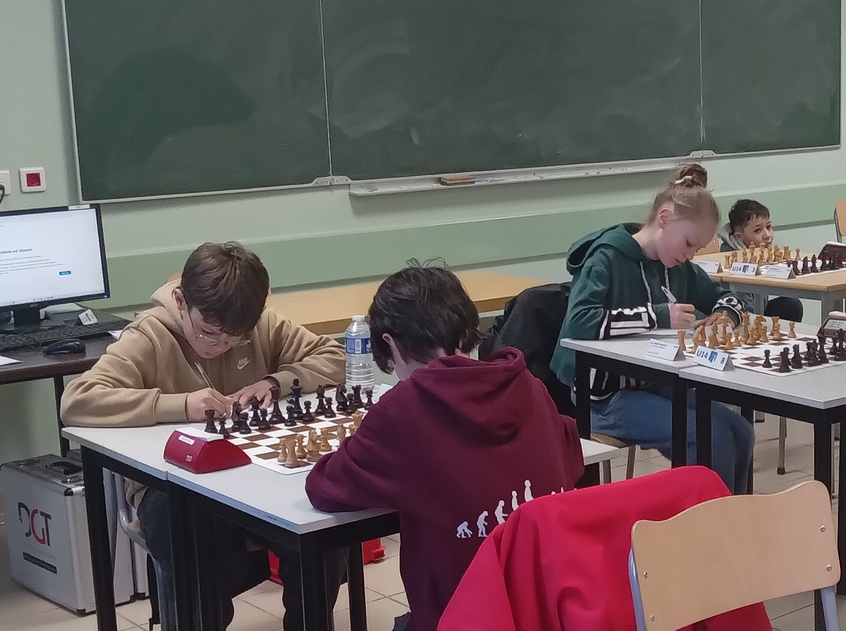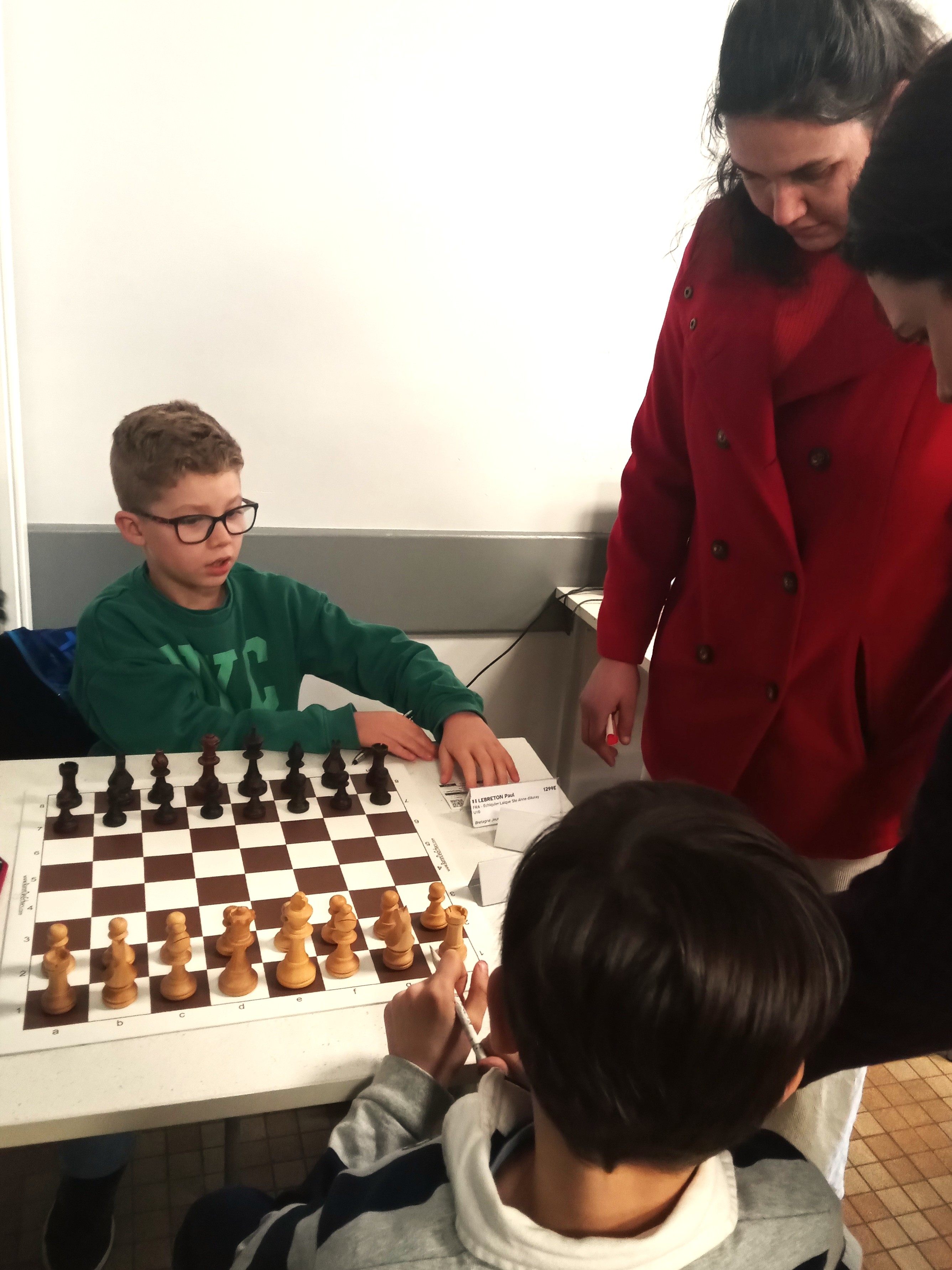 Dans le même temps, les plus jeunes ont commencé leur tournoi. Ils jouent à une cadence plus rapide et auront fini leurs sept parties en même temps que les grands. Bons débuts pour l’instant pour Célestin, Loup et Paul, avec déjà des prestations très intéressantes : à confirmer !