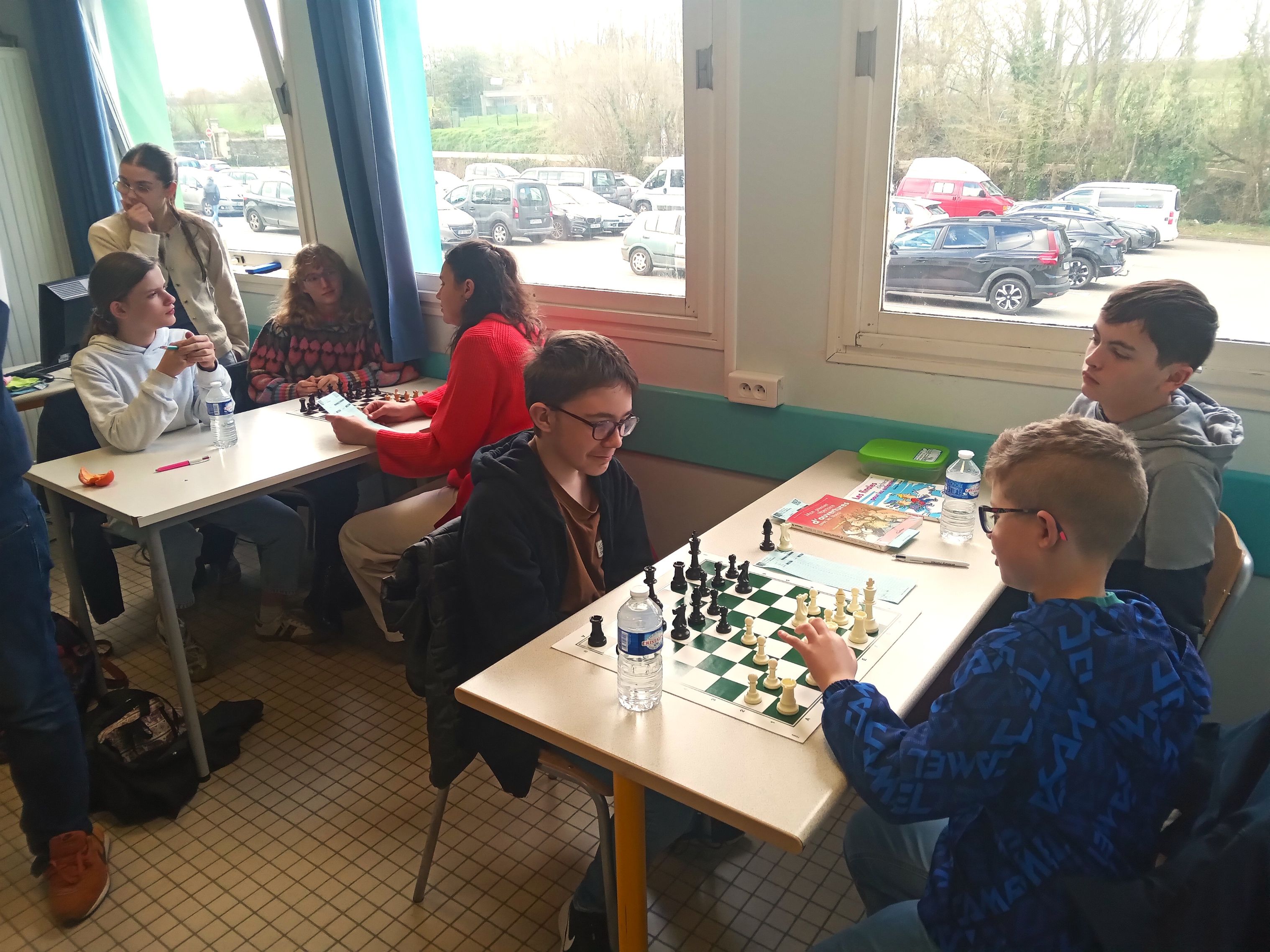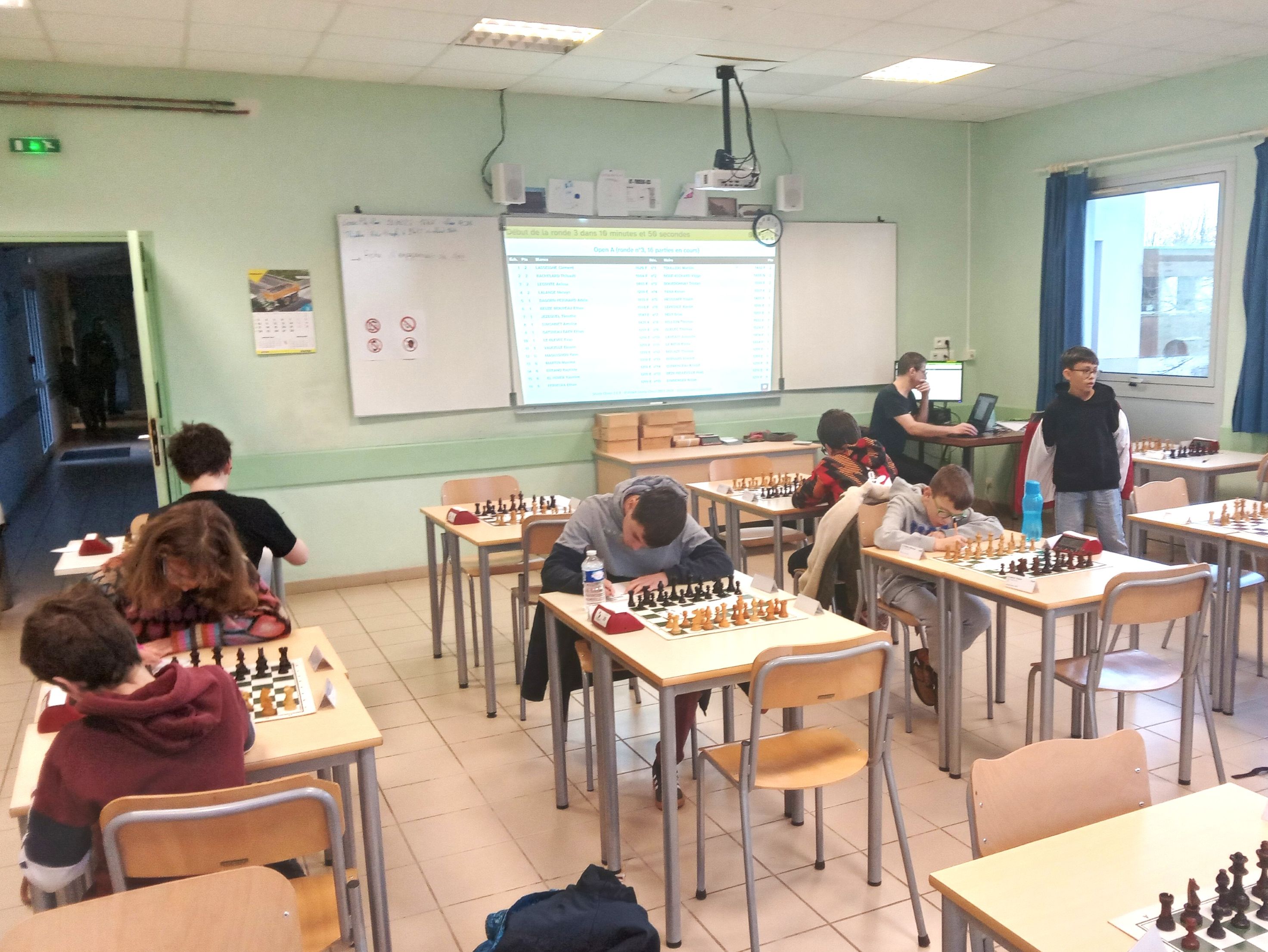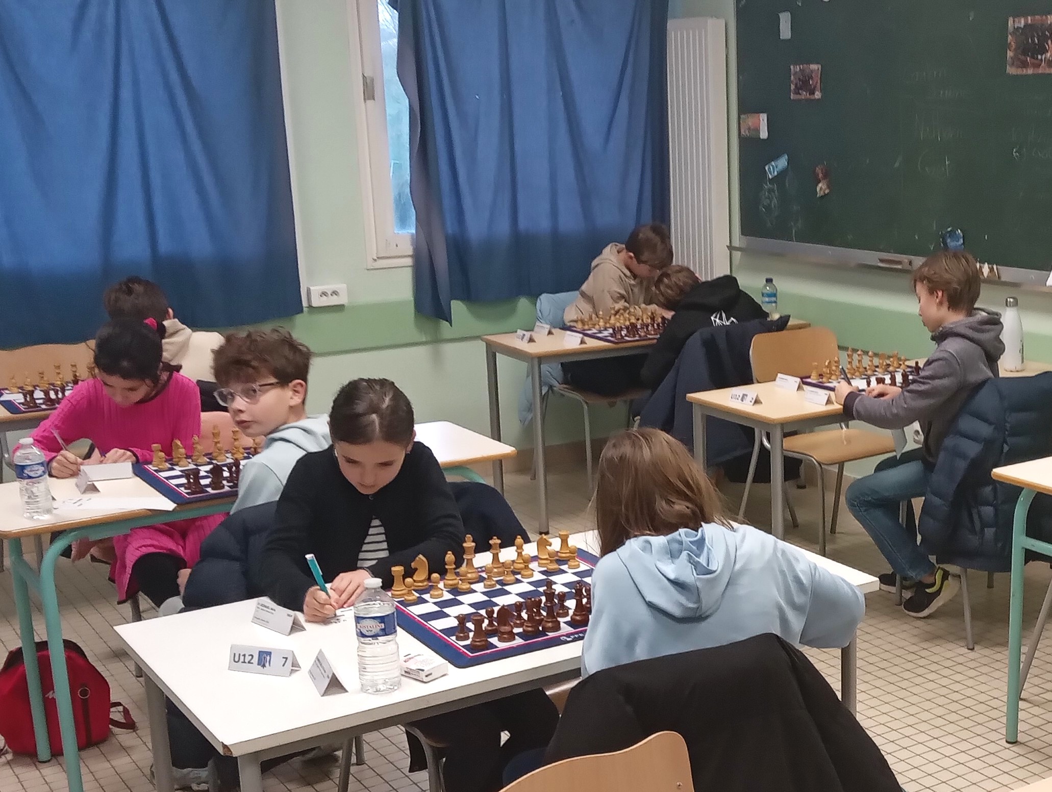 Dans le même temps, les plus jeunes ont commencé leur tournoi. Ils jouent à une cadence plus rapide et auront fini leurs sept parties en même temps que les grands. Bons débuts pour l’instant pour Célestin, Loup et Paul, avec déjà des prestations très intéressantes : à confirmer !