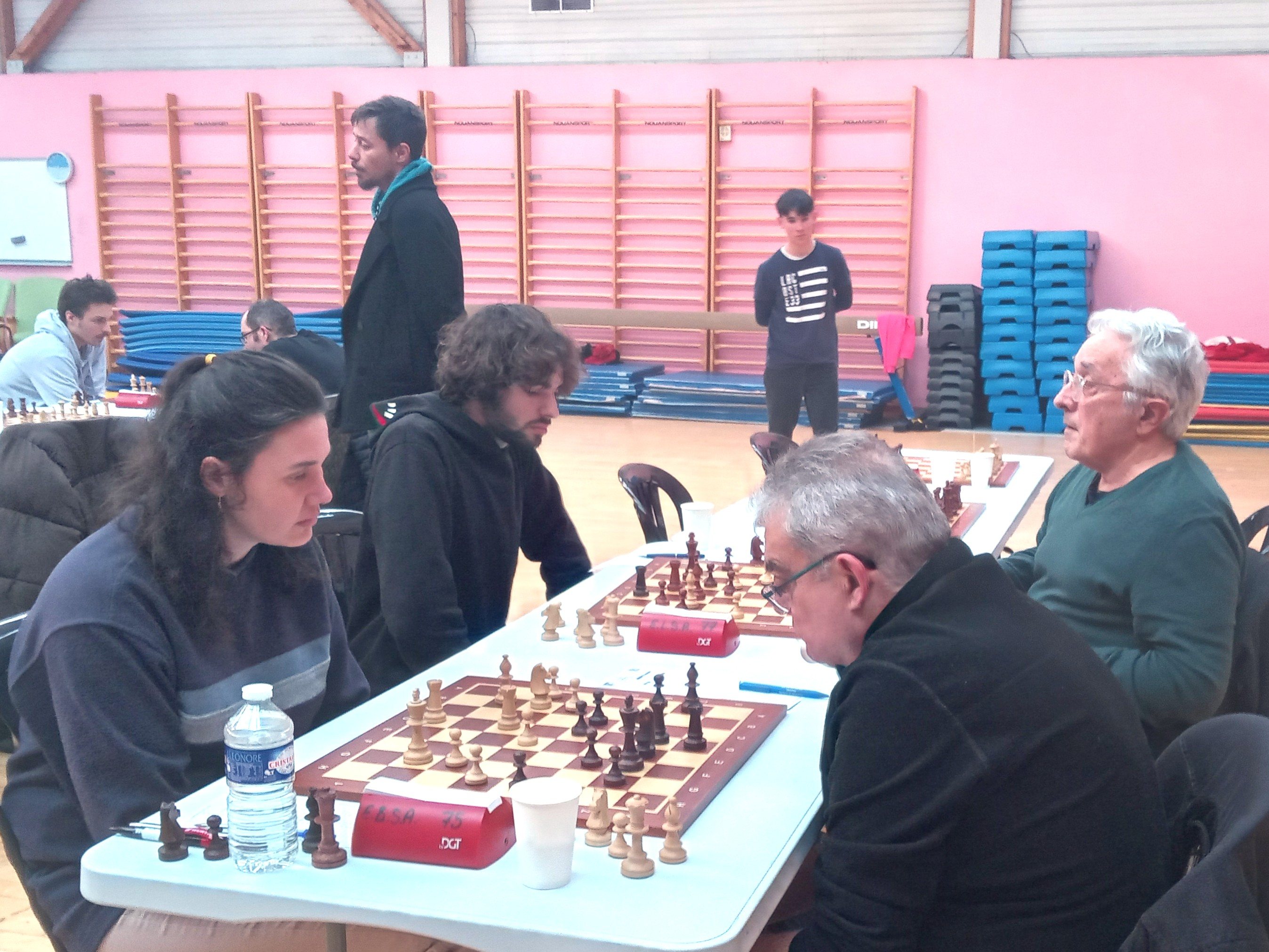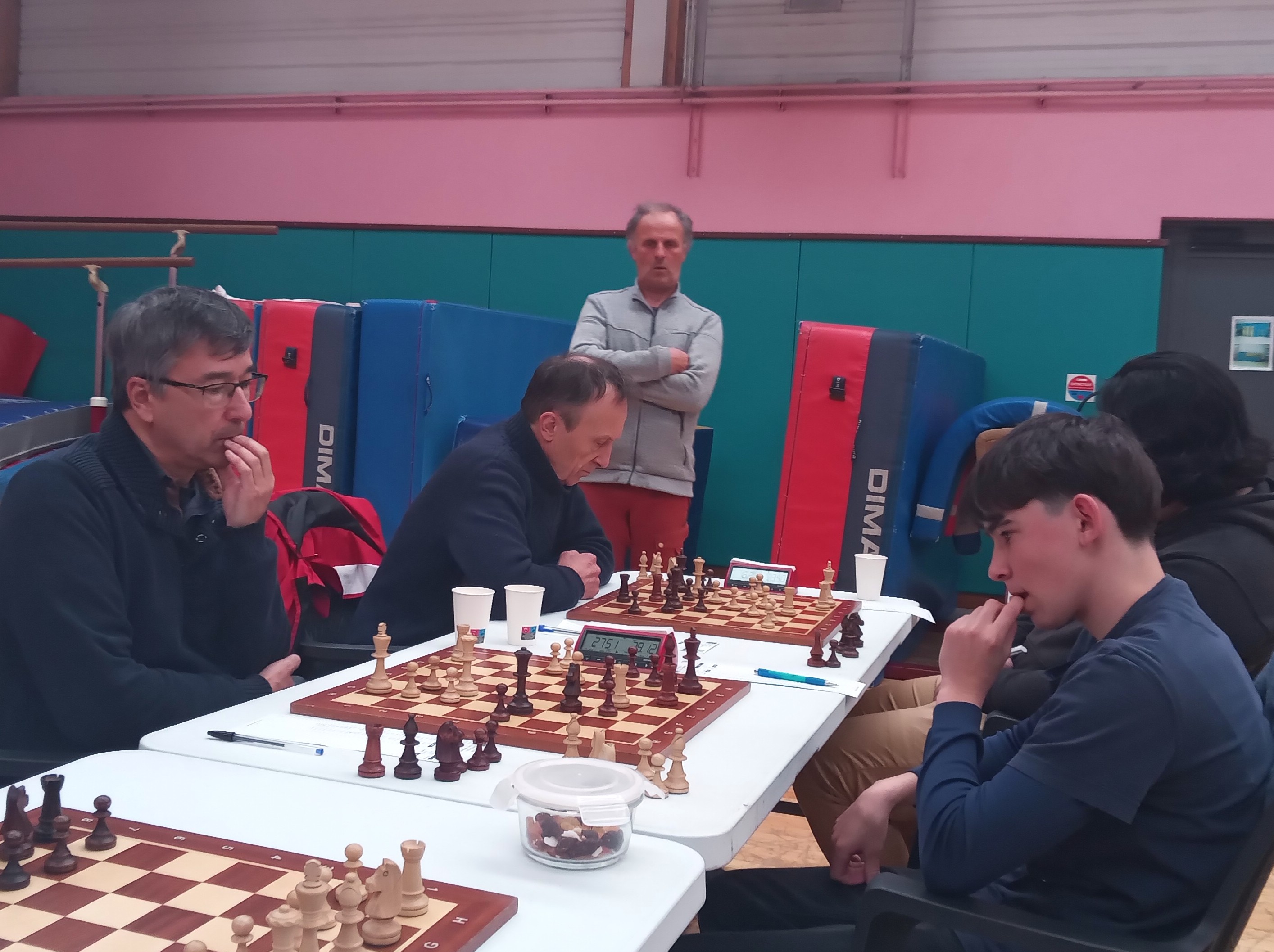 Dans le championnat Régional (groupe sud), la situation est inversée, hélas. Sainte-Anne d’Auray glisse à la dernière place après sa défaite contre la lanterne rouge ABC 3. Dans un beau championnat, d’un niveau très homogène, Hennebont et Muzillac ont une petite avance, mais derrière les équipes sont très proches, et la moindre défaillance se paie comptant. Aujourd’hui, nos joueurs ont cédé contre une équipe à la moyenne Elo légèrement plus élevée. Alan gagne, Evan L annule, mais Michaël, Loïc et Michel s’inclinent. Prochain match le 15 mars contre Muzillac, pas une partie de plaisir ! Mais tout est possible.