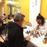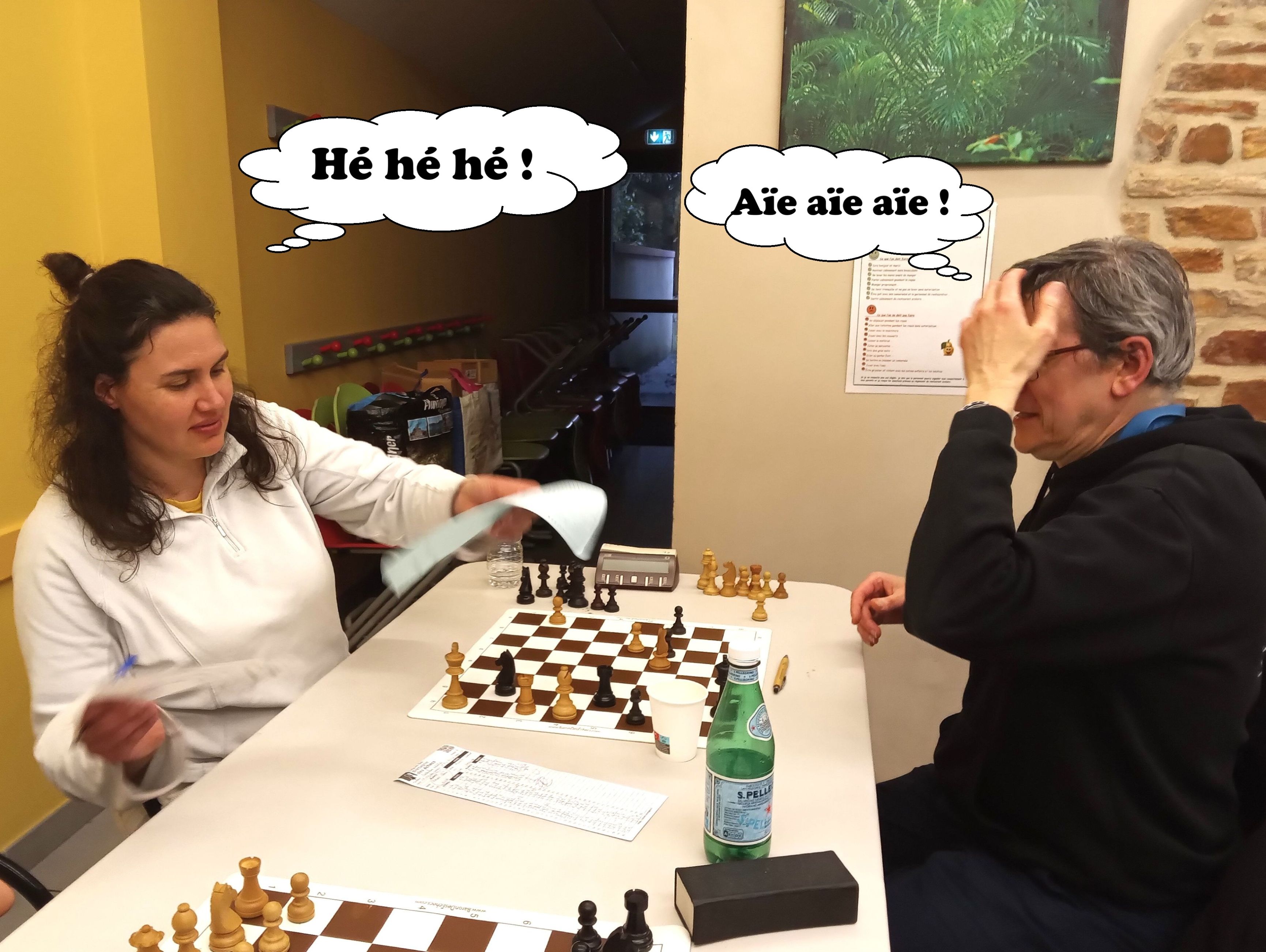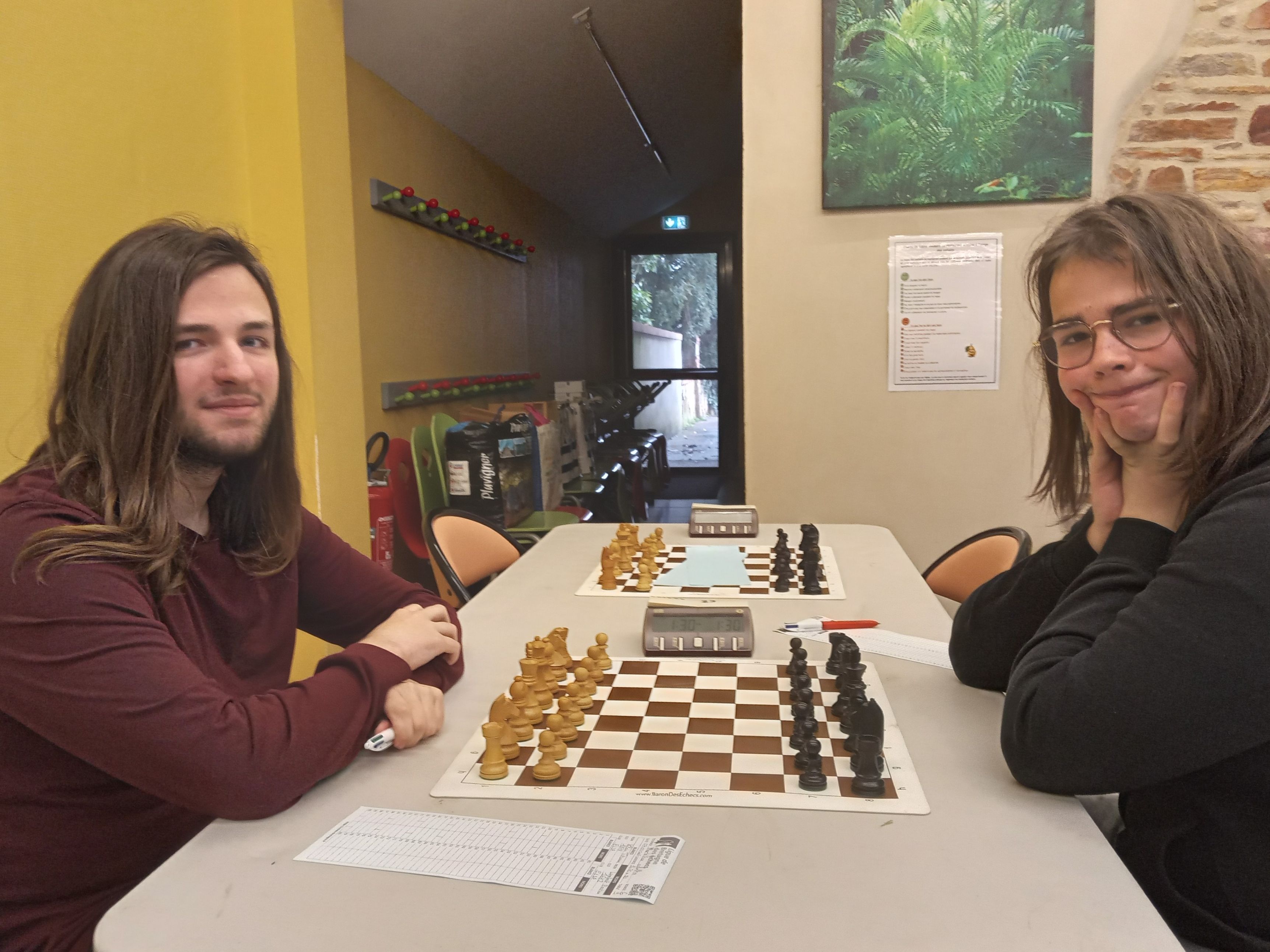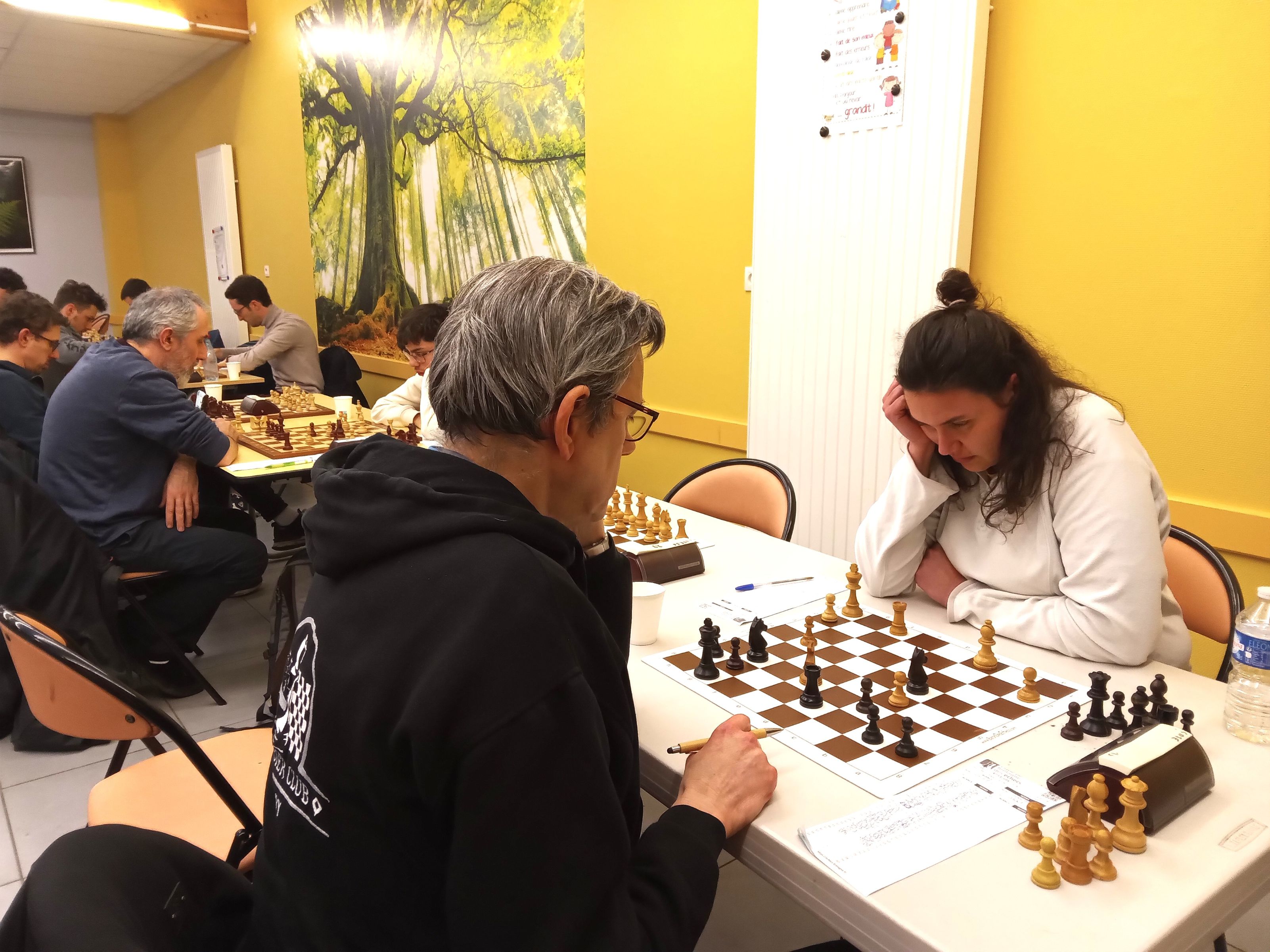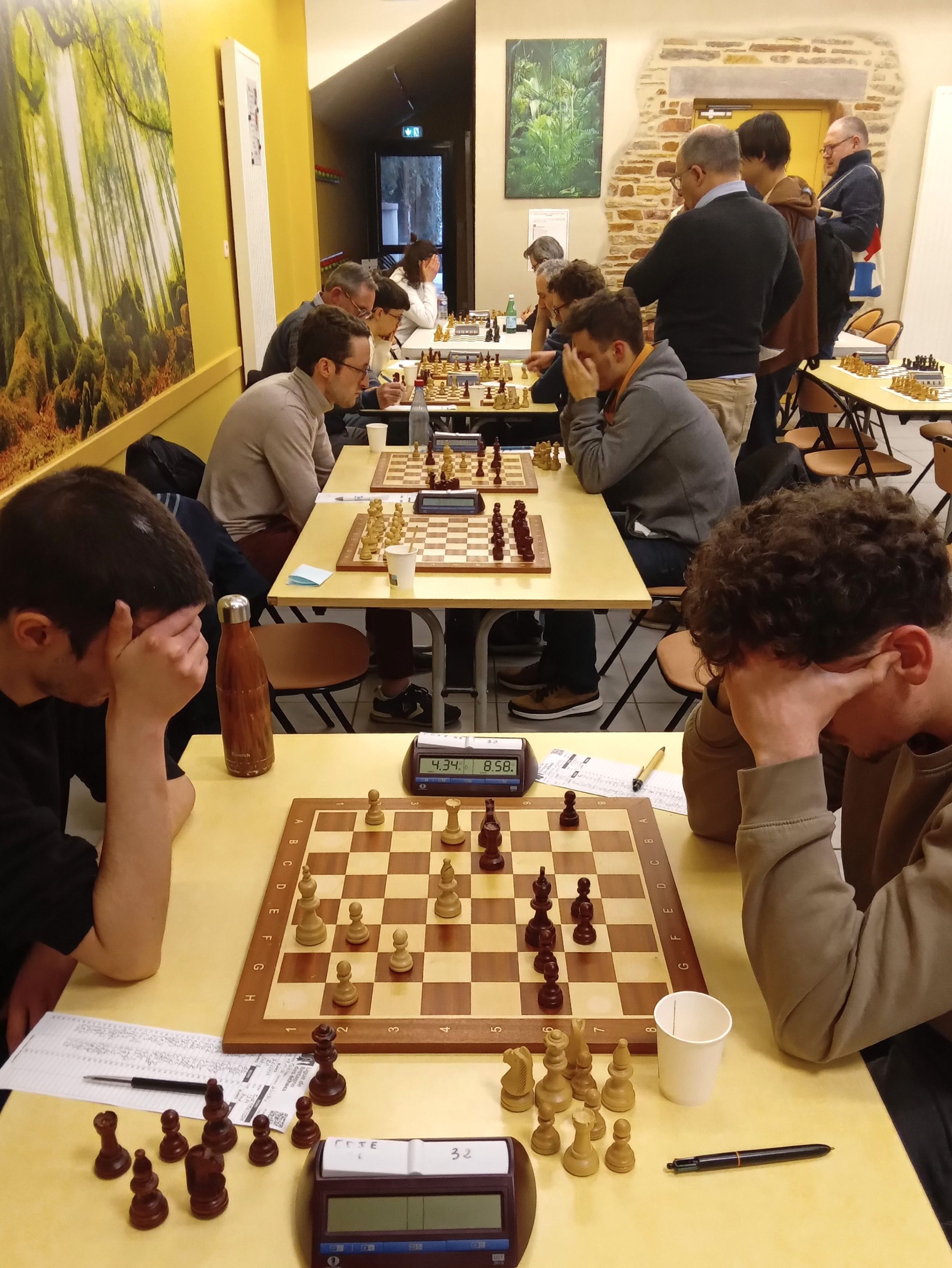 Notre joueur, champion en titre, a réalisé une grosse performance en venant à bout de Vincent Carnac, 2053 Elo, qui avait raté la première ronde puis tout gagné. Les autres Saint-Annois ont connu des fortunes diverses : Romain (4 points) est encore dans le top 10 après sa nulle combative contre Doitch Caso. Mais il est rejoint par nos deux féminines Andréa et Célia (perf’ contre Laurent Annetti, au bout de la journée), et par Titouan, qui revient très fort (quatrième victoire consécutive). Il a battu Bastien dans cette sixième ronde, au bout d’une partie maîtrisée. Deux autres joueurs d’ELSA jouaient aux premières tables : malheureusement Michaël et Evan V ont dû s’incliner en finale contre Franck Duplessy et Thomas Bazaille.