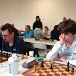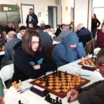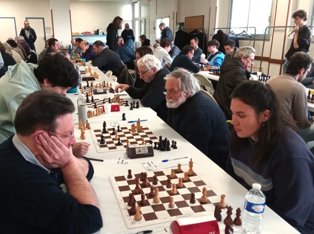 Déception pour Andréa, battue table 3 par Thomas Bazaille, dans une partie où elle semblait avoir toutes les cartes en mains. Elle reste à 3 points, encore 10ème du classement provisoire mais rattrapée par Evan V qui s’est défait de Luc Boët. Bastien décroche une bonne nulle contre Franck Duplessy ; il émerge à 2,5 points et rejoint Michaël qui s’est incliné contre Yannis Guihur au terme d’une partie technique. Après un mauvais début de tournoi, Titouan semble avoir trouvé son rythme et revient à 50 % après sa victoire contre Gérard Bougardier.