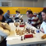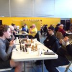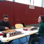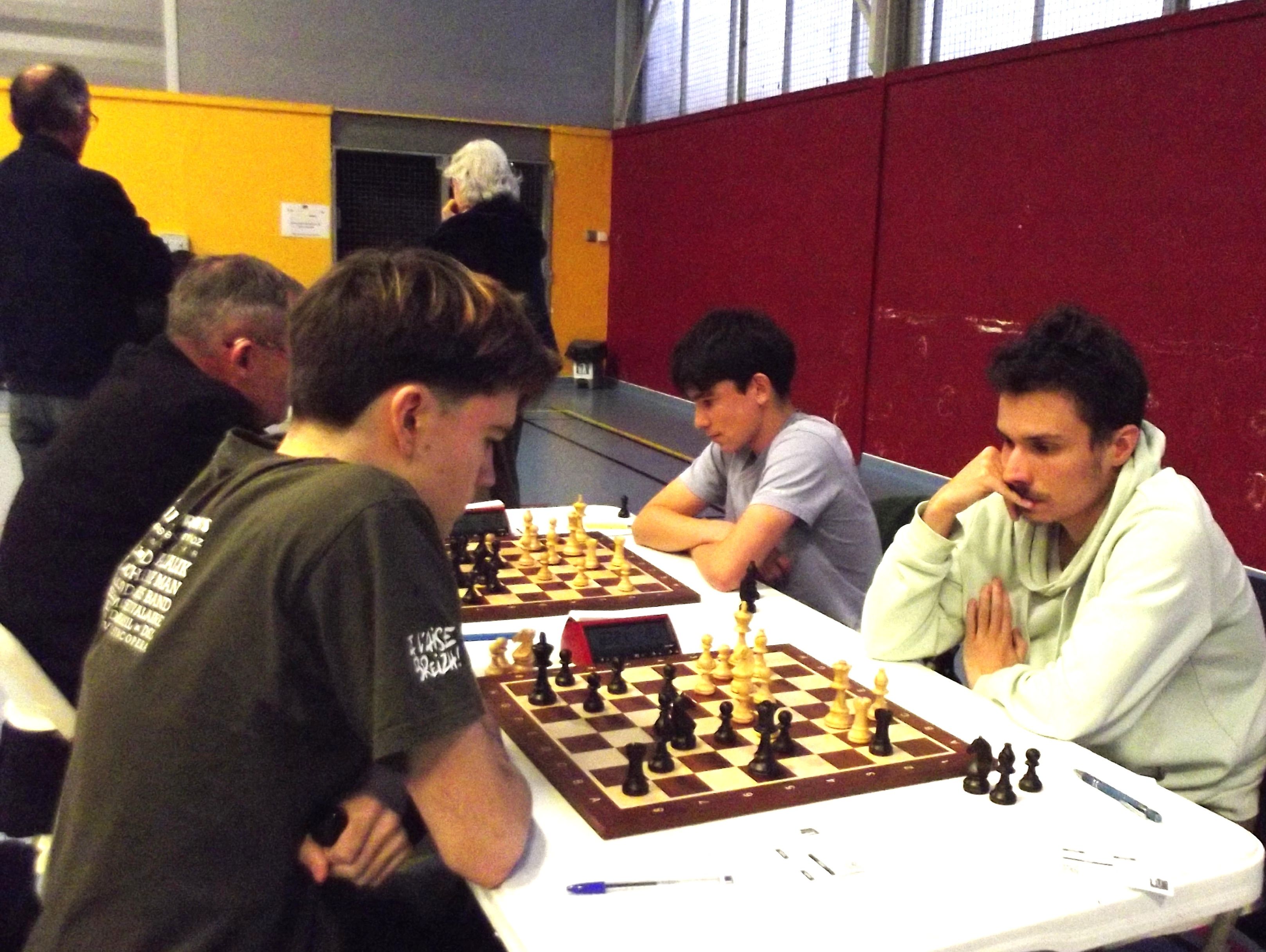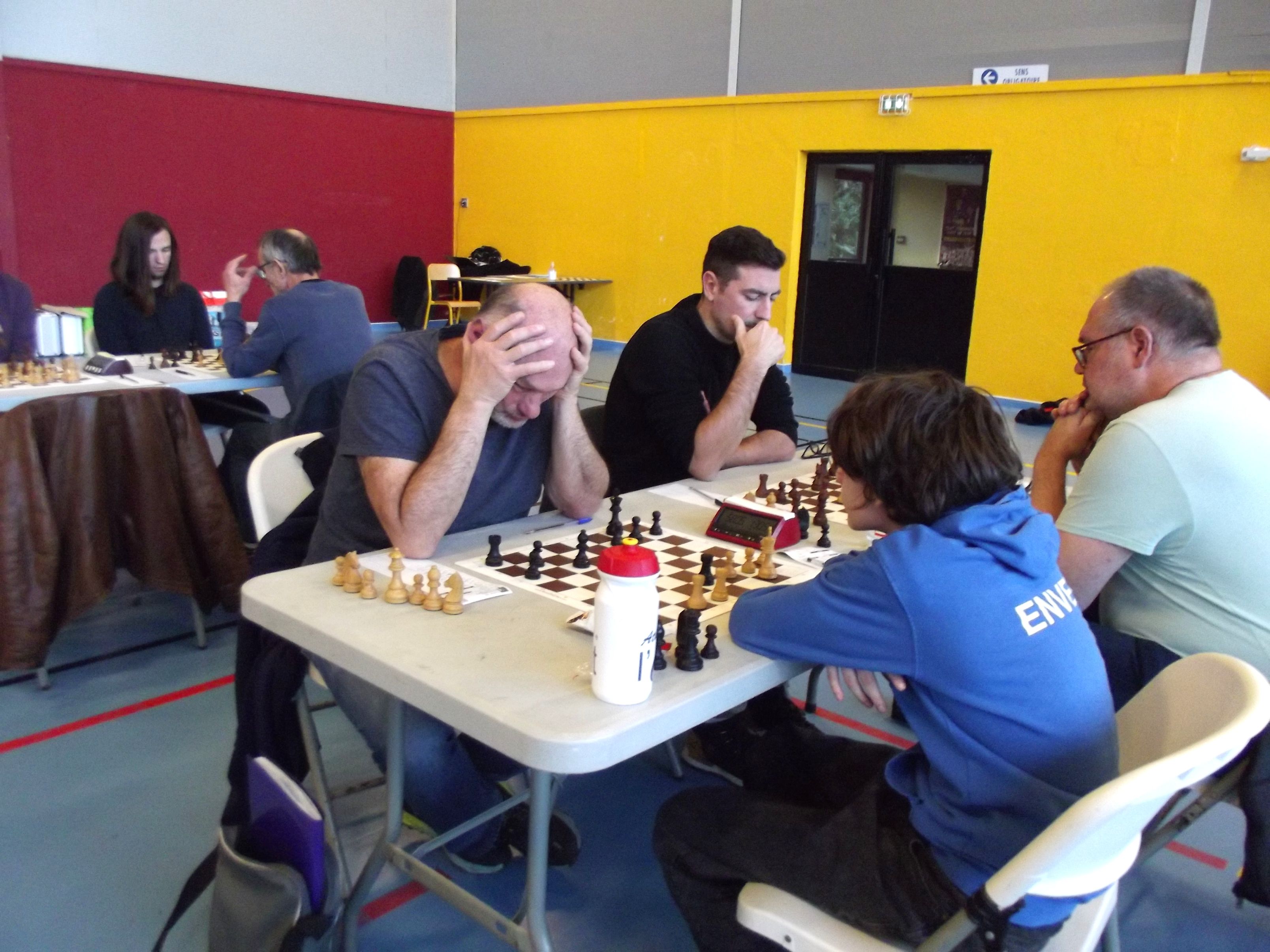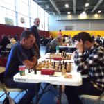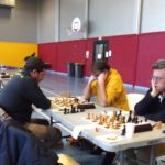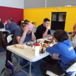 Evan Varin passait un bon test aujourd’hui table 3 contre Louis Gordon (1984 Elo), test non concluant pour l’instant avec une défaite logique. Autre test, autre défaite pour notre deuxième Evan, Evan Leroux, encore un peu juste contre Yves Le Corre, mais pas ridicule contre cette autre valeur sûre du championnat du Morbihan (défaite en finale). Déception en revanche pour Célia Malry, qui n’a pas trouvé la solution face à Kelen Brunel (cadet à 1588 Elo). Opposés à deux autres “jeunes qui montent”, Loïc Le Gal a su tirer une nulle contre Envel Le Hingrat (Elo à 1660), et Alan Querré a battu Jaouen Guillet. Bastien Lambert Ciesielczyk et Titouan Klein gagnent sans trop de soucis, tandis que nos quatre derniers joueurs s’affrontaient dans deux derbys saint-annois : nulle pour Yannick Le Strat et Quentin Santamaria, victoire compliquée de Michel Le Corff sur Soan Le Lostec. Résultats complets sur la page FFE du championnat.